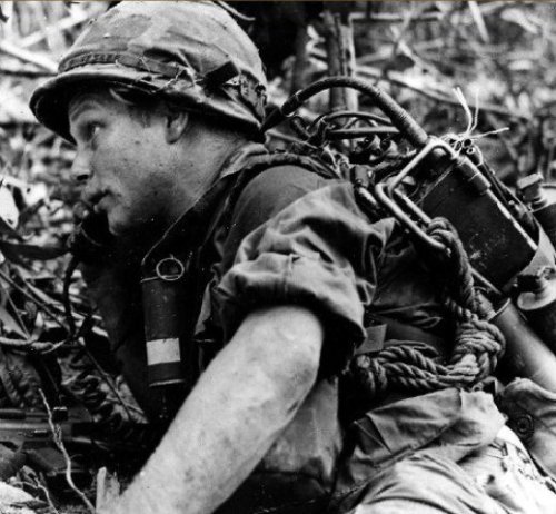 That’s when I felt a hot stinging sensation in my upper back. I swung my right hand around and pulled a hot piece of shrapnel out of my left shoulder. A fellow Blue not far from me took some shrapnel in his stomach about the same time he fired his M-79 grenade launcher and hit a nearby tree. There’s a good chance; that’s where the shrapnel came from.