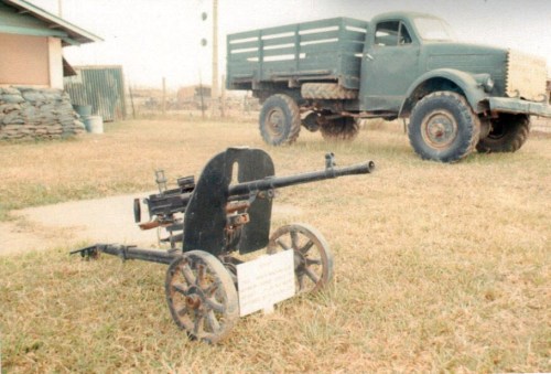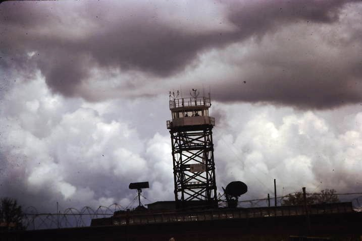 Radar unit on the wooden tower was used to pinpoint the origin of incoming rounds for retaliation purposes.