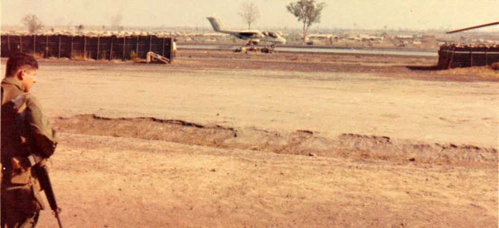 Aftermath of rocket attack on Phuoc Vinh air strip