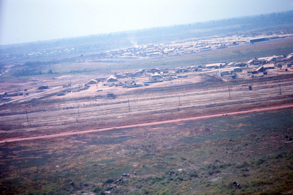 This is a Walker Jones aerial photo of Phuoc Vinh firebase provided to me by Frank McKinnon (HQ Troop 1/9th). Charlie Troop and HQ areas are top/center. Click on photo to enlarge…