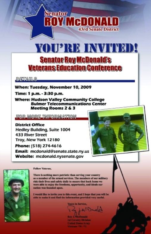 I just spent an hour on the phone today with New York State Senator Roy McDonald. Roy was one my best friends in Vietnam and after all these years, we had plenty to talk about.