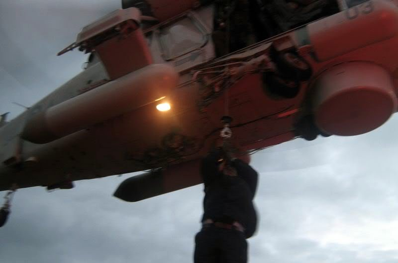 Well, they let down their rescue hoist cable, and one by one we were reeled up like wet puppies to the high-tech mothership, each of us soaked with creekwater, sweat and piss.