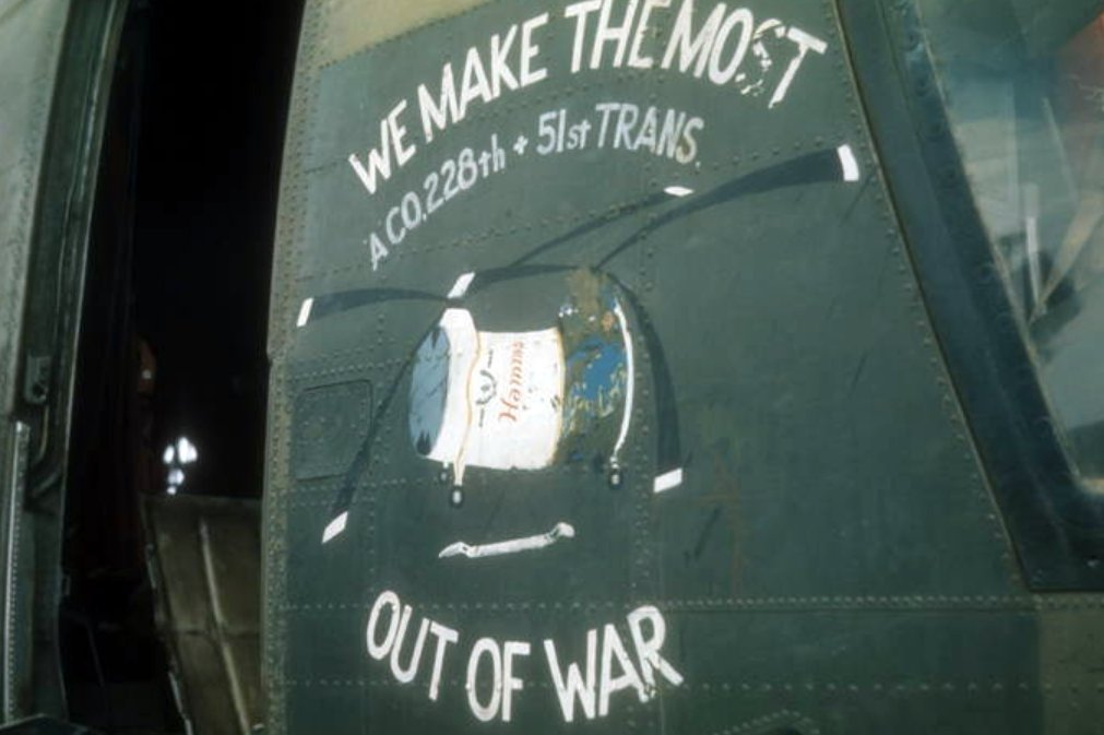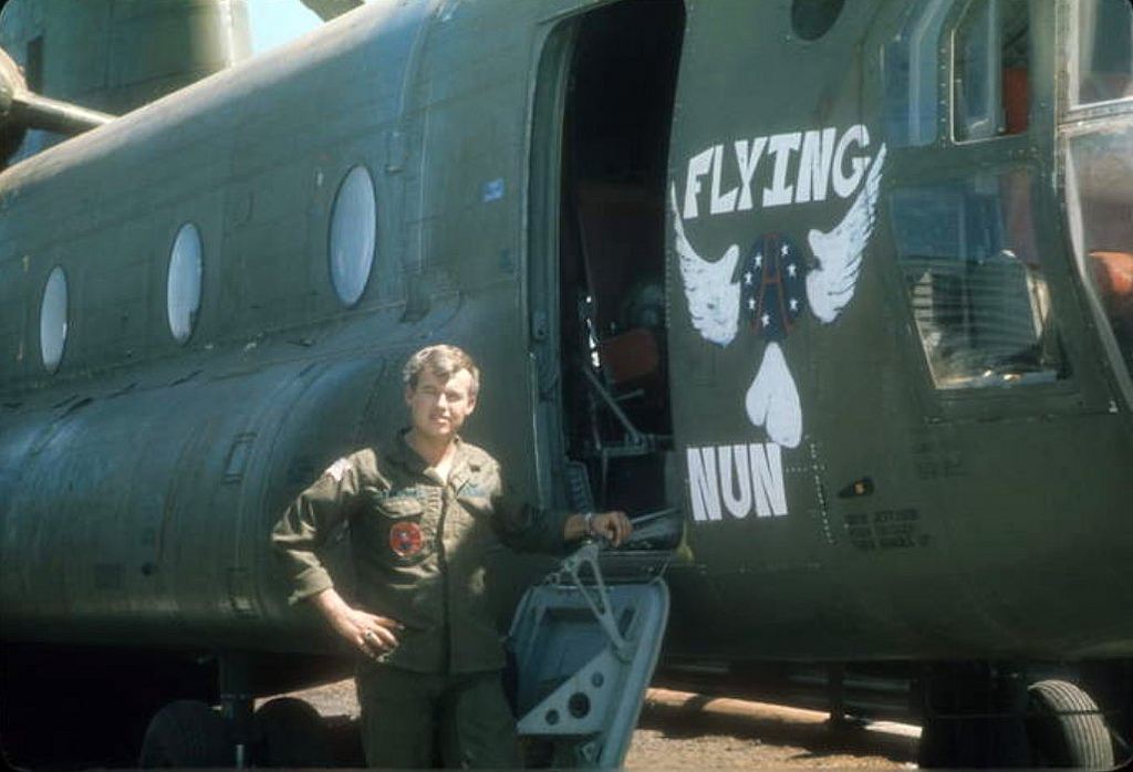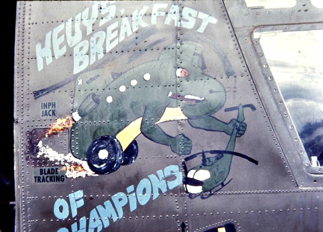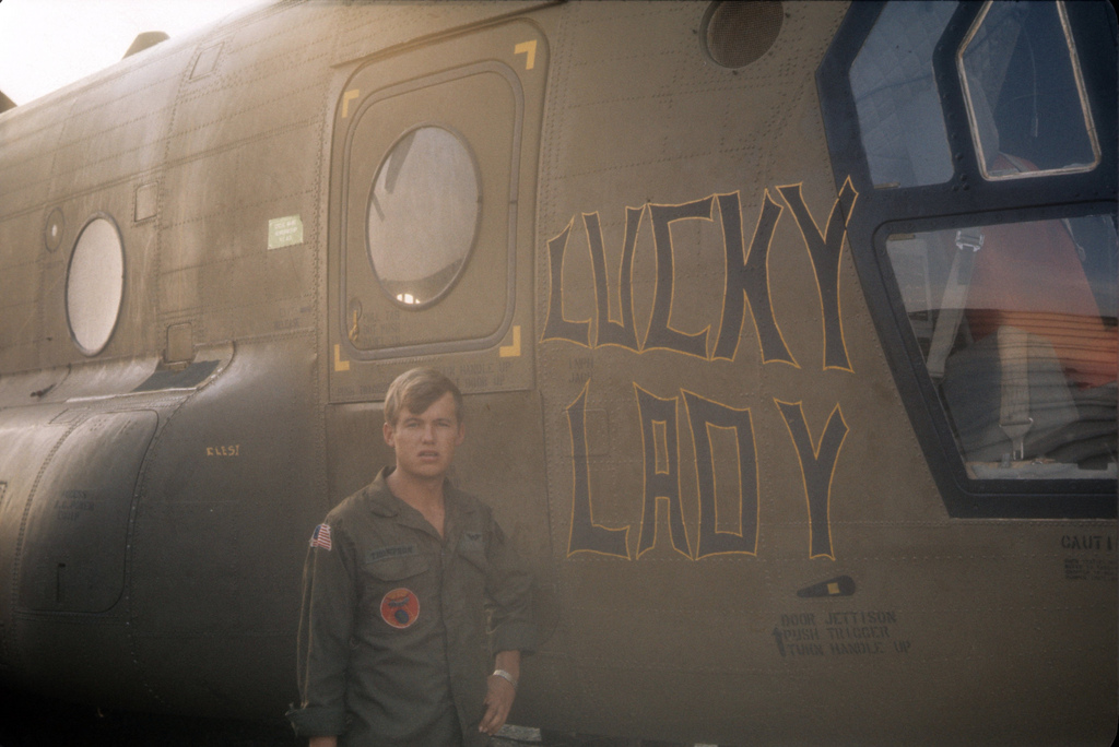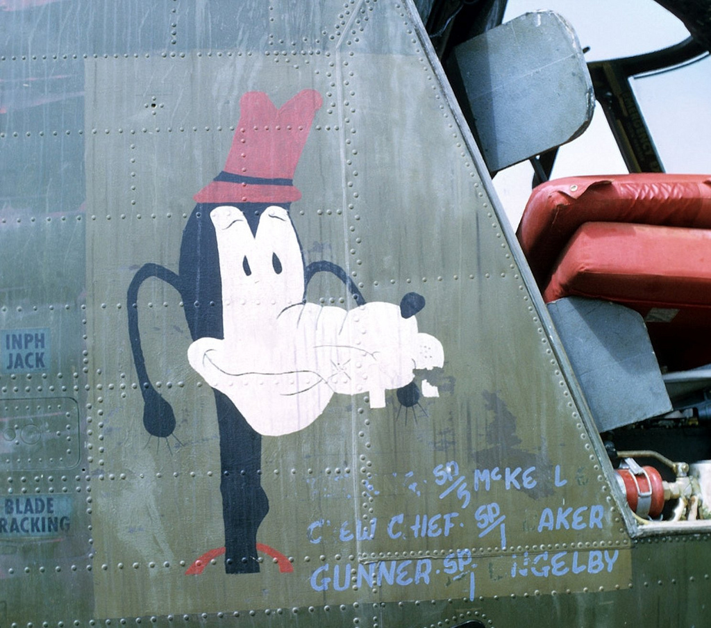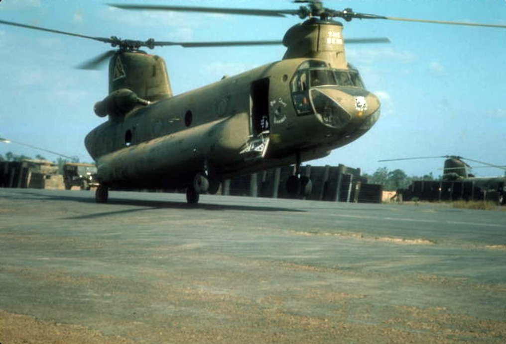 Image courtesy of Michael Dwyer, Sp 4, Victor call sign “Blivet” 227th Assault Helicopter Battalion Gladiator Huey CH-47 Chinook, South Vietnam Photo by David Parsley UH-1D Dolphin 605 “Ruptured Duck” with WO1 Boyd Mitchell and CPT Bill McCurry. Photo by Captain Bill McCurry, 1966-1967 CH 47 Nose Art Photo by John Lippert Sr. Song Be Province, Vietnam Photo by Dave Simmons Photo by Jerry Walker