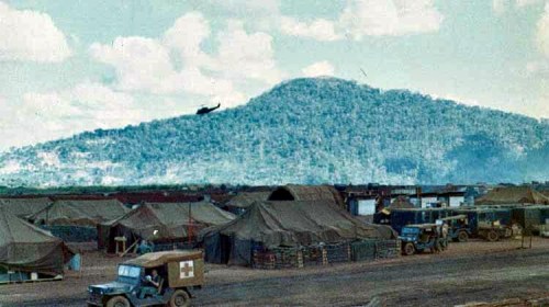 Nui Ba Ra Mountain in background on right, LZ Buttons with airstrip in background on left
